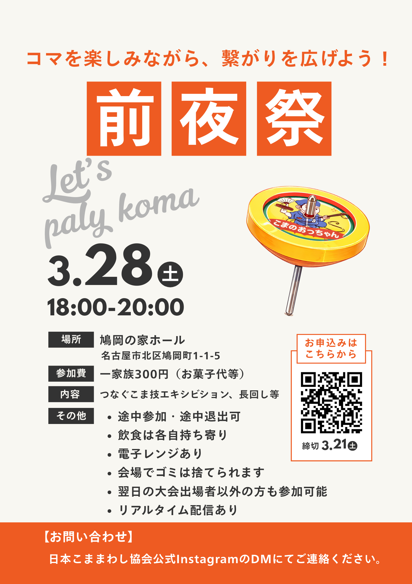 ご質問等お問い合わせは、日本こままわし協会公式インスタグラムのDMにてお願いいたします。